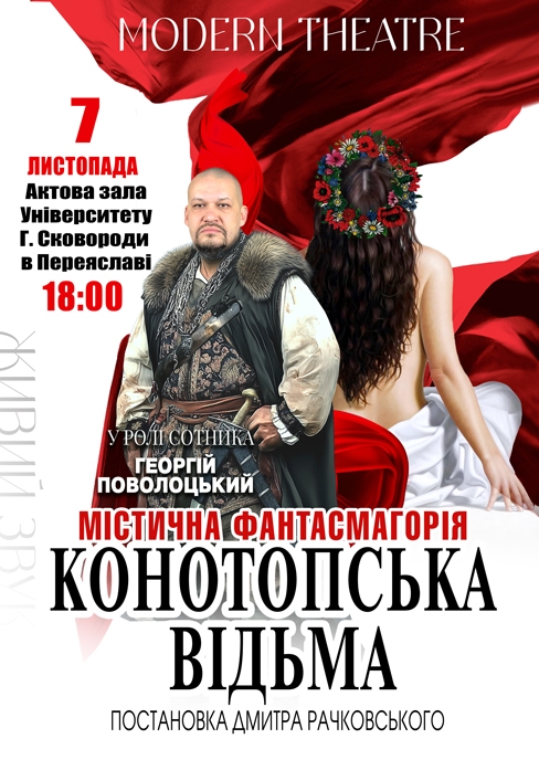 "Конотопська відьма" - гучна прем'єра вистави MODERN THEATRE за однойменною сатирично-фантастичною повістю Григорія Квітки-Основ’яненко у постановці Дмитра Рачковського. "… А хто він, той сотник Забрьоха? Так він дурень. Конотопський? Ні, справжній… А Пістряк? Чорт… Теж справжній? А хто його зна… Хіба що відьма…"